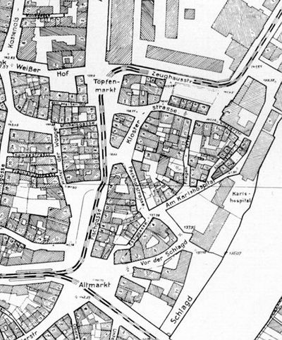 [[Bild: Klosterstraße.jpg|thumb|400px|left|'''Altstadt (Ausschnitt), Stand 1943.'''<br /> | [[Bild: Klosterstraße.jpg|thumb|400px|left|'''Altstadt (Ausschnitt), Stand 1943.'''<br /> | ||