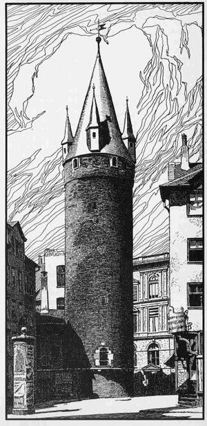 | − | [[Bild: Zimmer Druselturm.jpg|thumb| | + | [[Bild: Zimmer Druselturm.jpg|thumb|300px|left|'''Der Druselturm.''' Federzeichnung von [[Georg Zimmer]].<br /> |