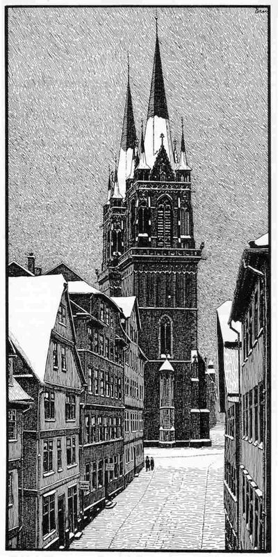 | − | [[Bild: Lange Martinskirche.jpg|thumb| | + | [[Bild: Metz R Martinskirche.jpg|thumb|400px|left|'''Blick durch die Kasernenstraße auf die Martinskirche, 1921.''' Federzeichnung von [[Ernst Metz]].]] |