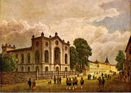 | + | [[Bild: Kurz Synagoge.jpg|thumb|450px|right|'''Die Synagoge zu Cassel, um 1840.''' Stahlstich von G. M. Kurz. -- Arche-Kunstkarte Nr. 47 (Vlg. F. Lometsch).]] | ||