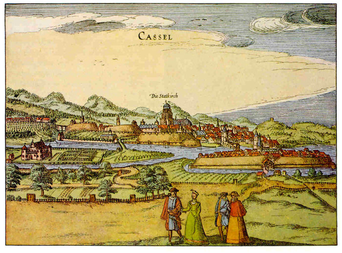 | − | [[Bild: Braun-H | + | [[Bild: Kassel Ansicht Braun-H.jpg|thumb|700px|center|Kassel. Handkolorierter Kupferstich nach Braun-Hogenberg von P. Bertius, 1616.<br />Kassel in alten Bildern, 100 Ansichten und Pläne. Hrsg. v. Fritz Lometsch. Kassel 1966. S. 7.]] |