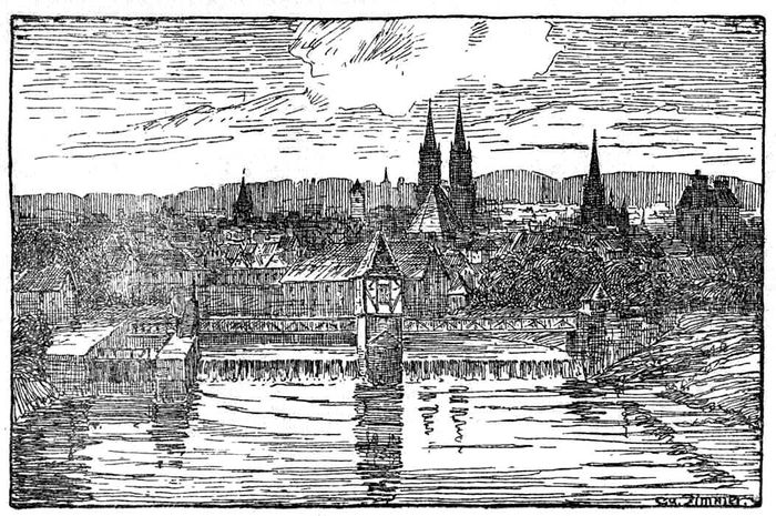 [[Bild: Zimmer Kassel.jpg|thumb|700px|center|Kassel, Ansicht von der Fulda aus. Federzeichnung von [[Georg Zimmer]].<br />Gustav Wentzell: Lieb' Heimatland. Lieder und Gedichte. Kassel 1919. S. 9.]] | [[Bild: Zimmer Kassel.jpg|thumb|700px|center|Kassel, Ansicht von der Fulda aus. Federzeichnung von [[Georg Zimmer]].<br />Gustav Wentzell: Lieb' Heimatland. Lieder und Gedichte. Kassel 1919. S. 9.]] | ||