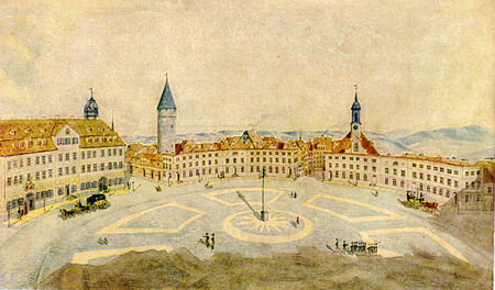 − | [[Bild: Feidel Königsplatz.jpg|thumb| | + | [[Bild: Feidel Königsplatz.jpg|thumb|450px|right|'''Königsplatz, 1820.''' Aquarell von Philipp L. Feidel. -- [[Paul Heidelbach|P. Heidelbach]], ''Kassel'' (1957), S. 221.]] |