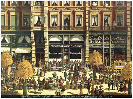 − | [[Bild: Metzarchiv Königssplatz Sparkasse.jpg|thumb| | + | [[Bild: Metzarchiv Königssplatz Sparkasse.jpg|thumb|450px|right|'''Die Kreissparkasse Cassel am Königsplatz 1910.''' Gemälde von [[Ernst Metz]]. -- Archiv Harald Metz, Bickenbach.]] |