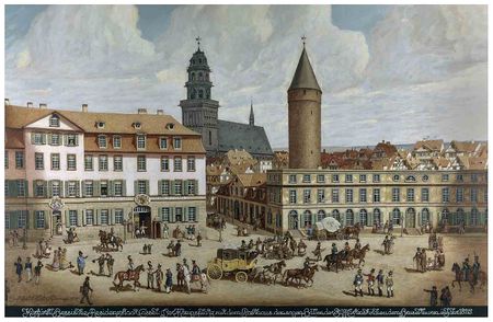 − | [[Bild: Metzarchiv Königsplatz.jpg|thumb| | + | [[Bild: Metzarchiv Königsplatz.jpg|thumb|450px|right|'''Der Königsplatz mit dem Posthaus, den „Hallen", der Martinskirche und dem Druselturm im Jahre 1825.''' Gemälde von [[Ernst Metz]] 1970. -- E. C. Metz, ''Residenzstadt Cassel'' (1980), S. 51, Taf. 20; hier: Archiv Harald Metz, Bickenbach.]] |