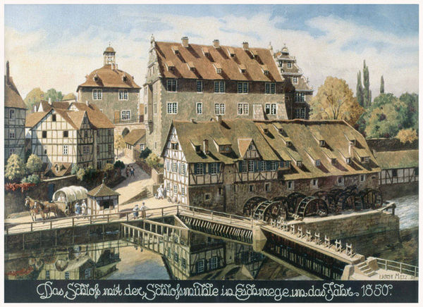 (Die Seite wurde neu angelegt: „<br/> '''Das Schloß mit der Schloßmühle 1850.''' Gemälde von [Ernst Metz. -- Metzarchiv …“) |