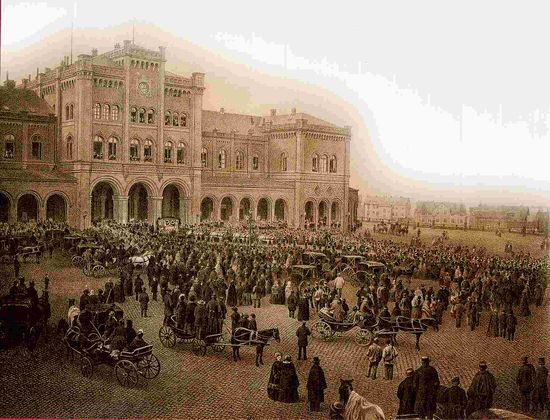 − | [[Bild: Bahnhof 1875.jpg|thumb| | + | [[Bild: Bahnhof 1875.jpg|thumb|550px|right|'''Bahnhof 1875.''' Menschenmenge vor dem Bahnhofsgebäude am 12. Januar 1875, als der Leichnam des im Exil verstorbenen Kurfürsten Friedrich Wilhelm nach Kassel überführt wurde. -- J. A. Huber, ''Stadtgeschichte Kassel'' (2012), S. 270.]] |