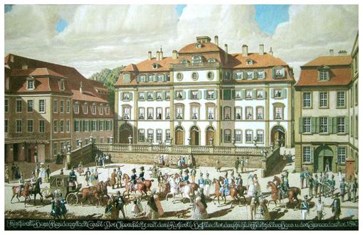 [[Bild: Metzarchiv Opernplatz Waitz.jpg|thumb|510px|right|Opernplatz mit Palais Waitz von Eschen 1842]]