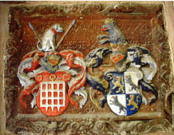 • Allianzwappen Hesse – Wolf v. Gudenberg, 1574, Schloß Elberberg.