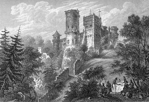 Die Löwenburg, vor 1919. Federzeichnung von Georg Zimmer.