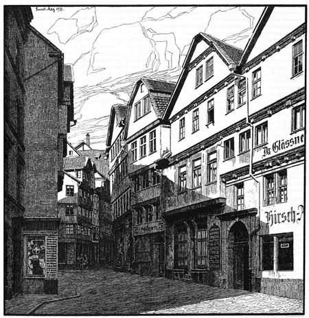 Das Grimmhaus in der Marktgasse. Ölgemälde von Georg Burmester 1914.