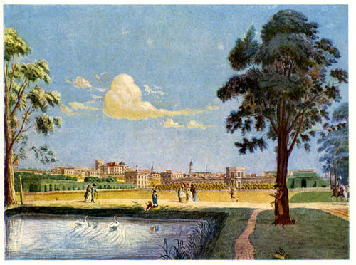 Karlsaue mit Orangerie und Blick auf die Oberneustadt, 1789. Kolorierter Stich von Johann Werner Kobold (1740 - 1803). -- Paul Heidelbach, Kassel (1957), S. 145.