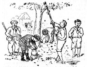 Textzeichnung von E. Brey zum „Quetschenfrieder“. -- Casseläner Jungen, S. 17.