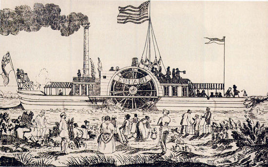 Das Dampfschiff „Eduard“ 1843. -- J. A. Huber, Stadtgeschichte Kassel (2012), S. 284.