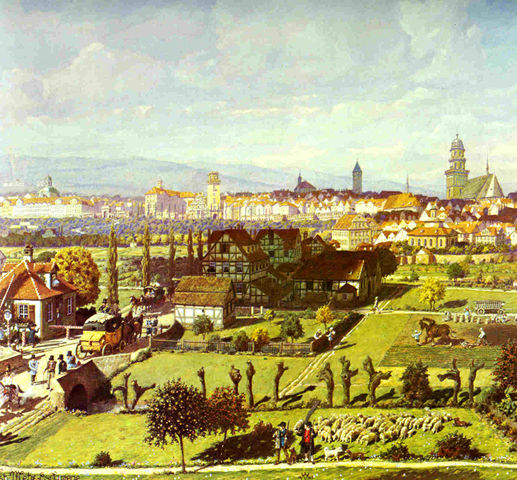 Kassel-Ansicht 1830. Gem. v. E. Metz. Aus: Metz, Residenzstadt Cassel (1980), S. 15.