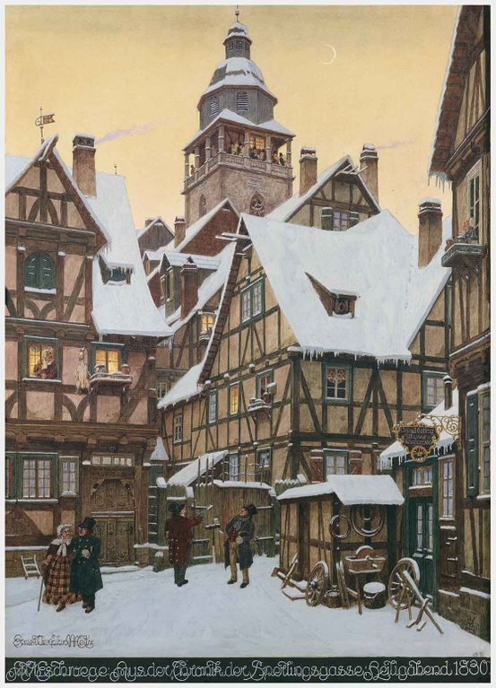 Ernst Metz: Eschwege, Sperlingsgasse, Heiligabend 1830. -- Archiv Harald Metz, Bickenbach 2012; Rechte ebd.