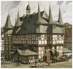 Ernst Metz, Frankenberger Rathaus 1800. -- Metzarchiv Bickenbach 2012; Rechte ebd.